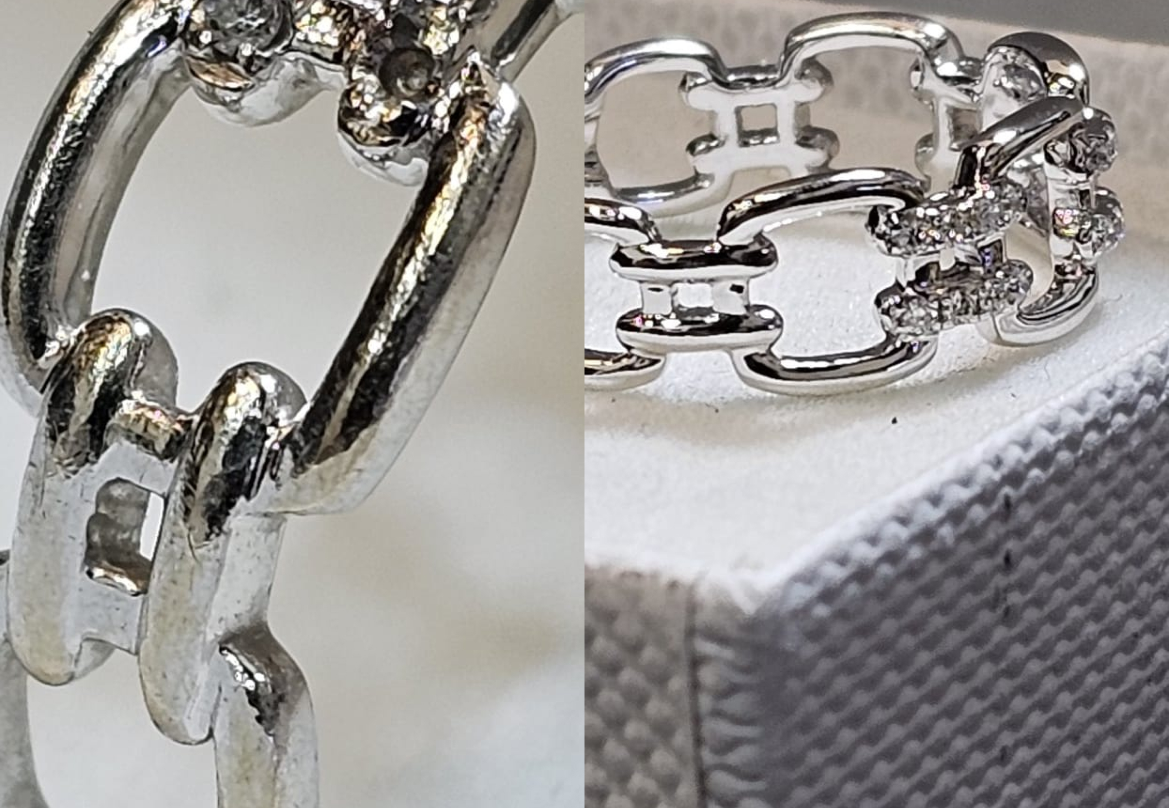 Aplicăm un strat de rodium pe aurul alb, roz sau negru pentru un finisaj superior și protecție împotriva zgârieturilor.